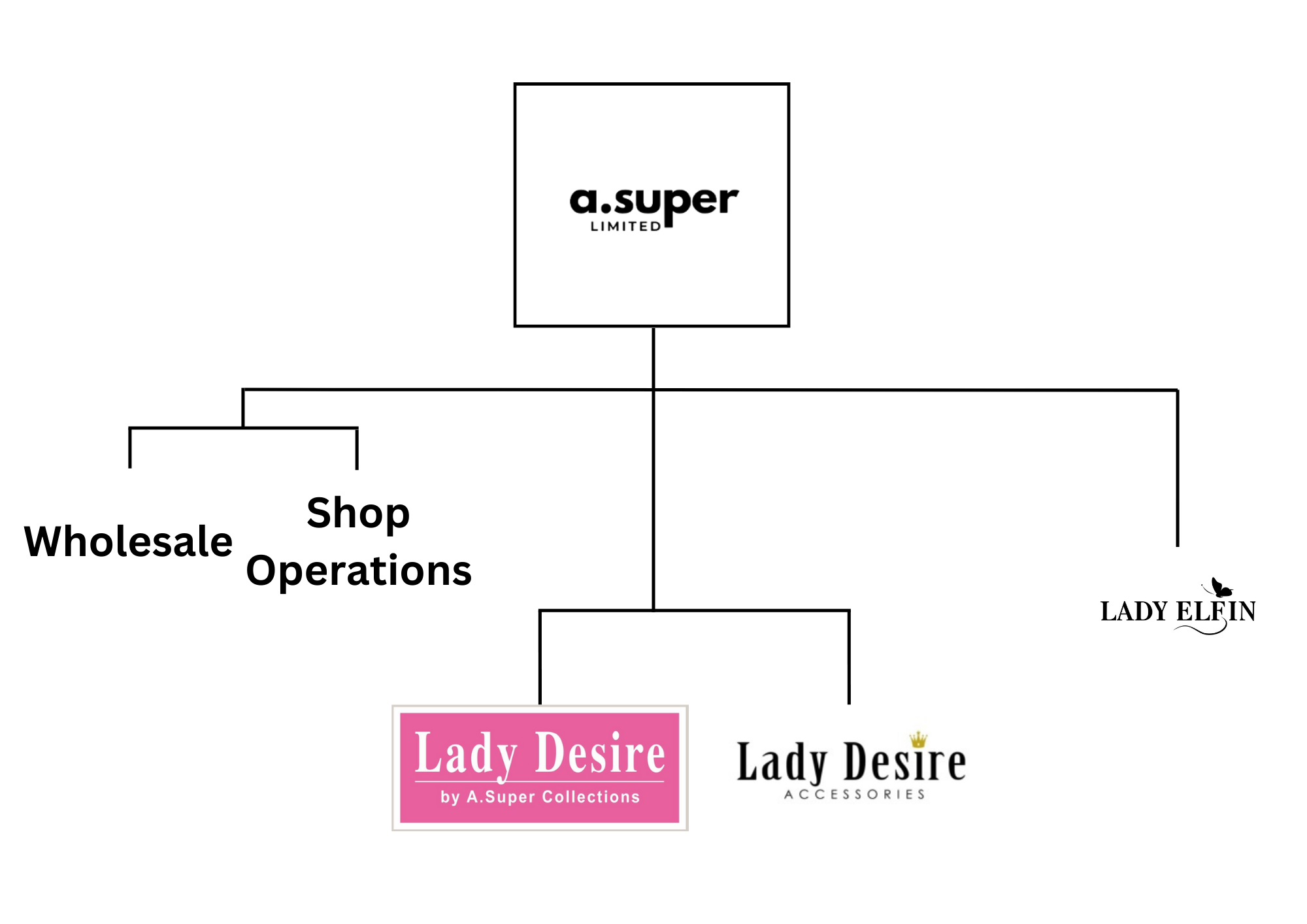 Lady Desire is one of the major brands under the Europe and Japanese fashion of A.SUPER Limited. The group's brand portfolio also includes Lady Elfin, a Japanese style fashion convenience store. In addition, A.SUPER Limited is the franchisee of Claudio Ferrici and Gigi Fratelli, a famous fashion brand in Netherlands.